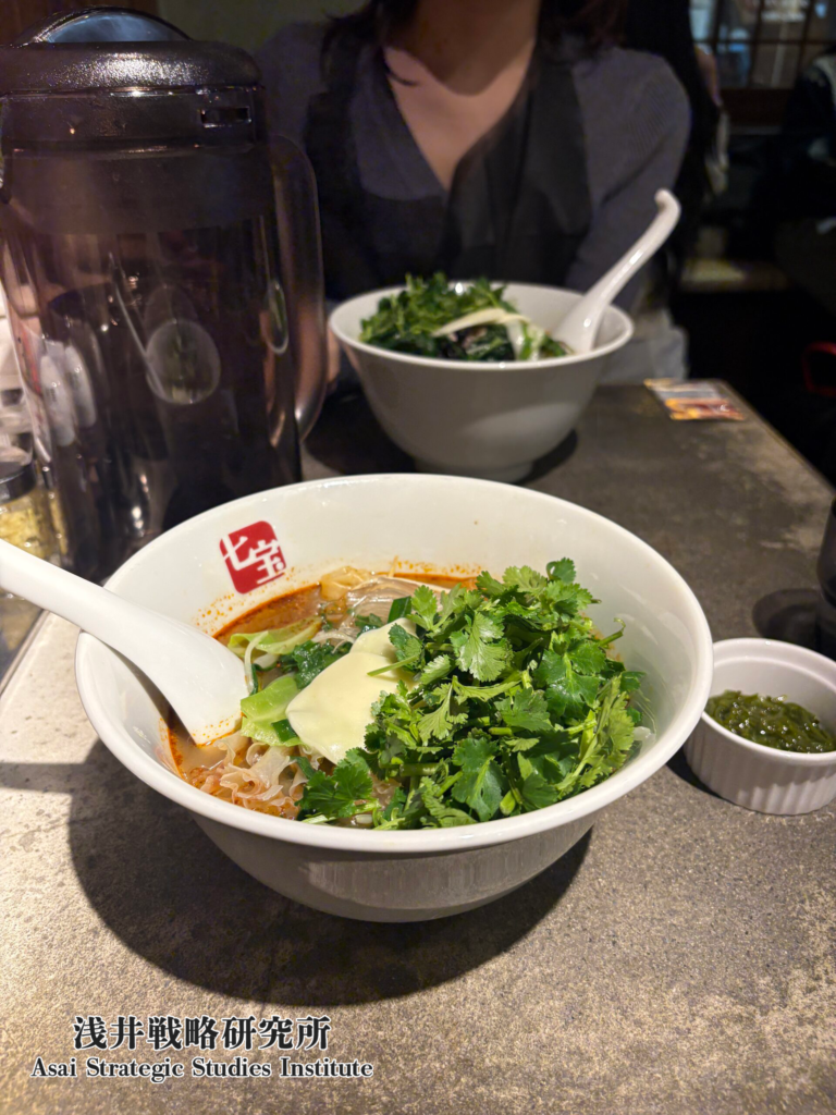 味はしっかり濃厚めで、満足感がある。七宝のさっぱり感とは対照的に、「しっかり食べた」という充実感が得られる。「麻辣火鍋」に豆乳を足したような味の印象。