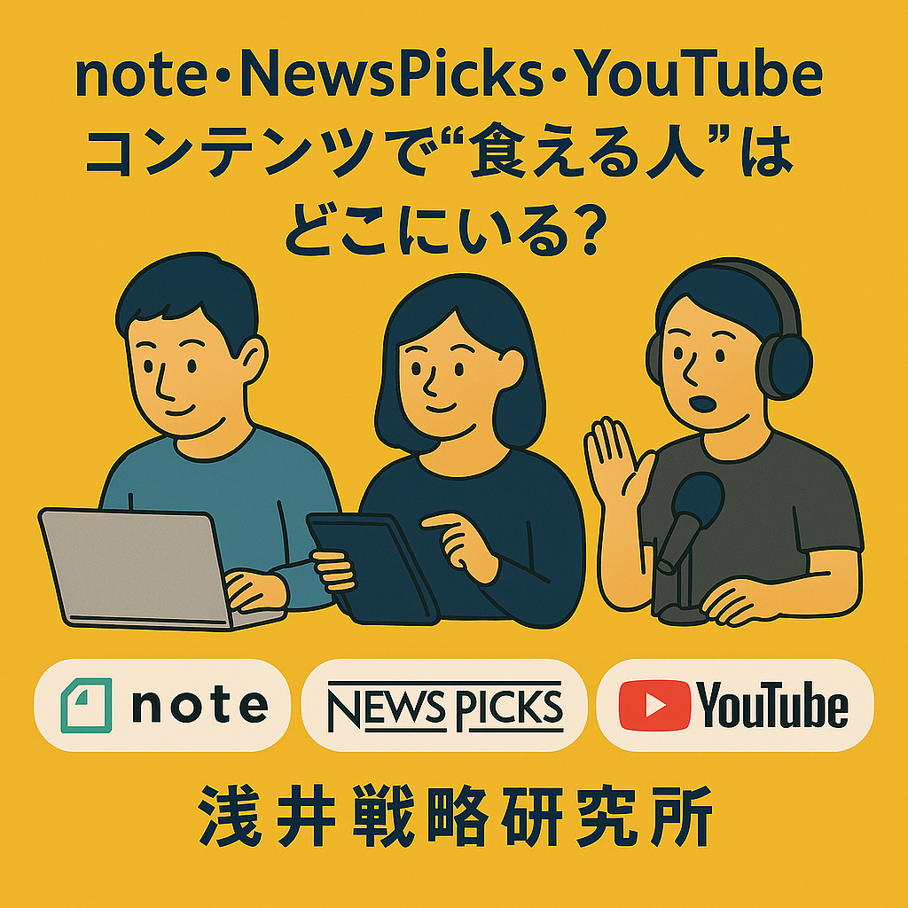 本稿では、日本における代表的なコンテンツプラットフォームであるnote・YouTube・NewsPicksの構造を比較し、実際に“食える人”の条件と、その背景にある仕組みを解き明かす。